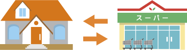 自宅と目的地の往復 (例:自宅前からスーパー前まで往復)