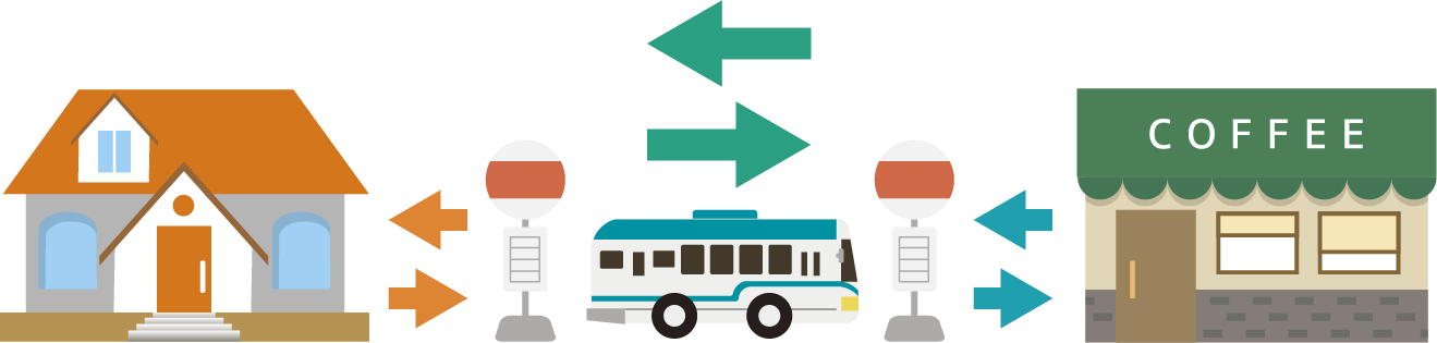 ご自宅まで運行します。同じ便にご予約いただいた方が複数いた場合は、